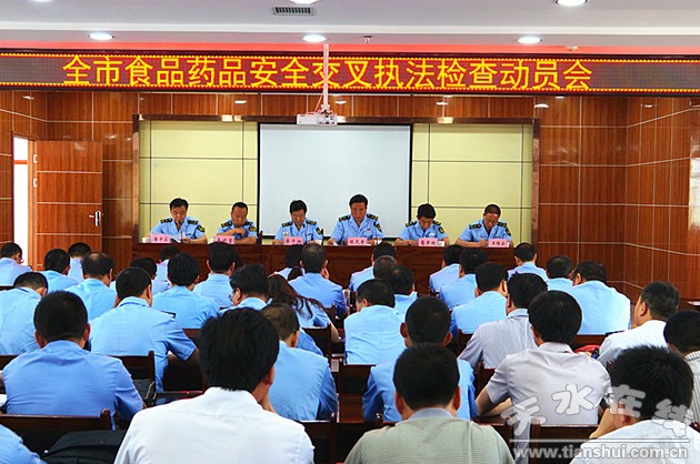 為全面掌握各縣區(qū)監(jiān)管工作進(jìn)度,強(qiáng)化執(zhí)法學(xué)習(xí)交流,提升執(zhí)法監(jiān)管能力,促進(jìn)全市食品藥品監(jiān)管工作,確保“伏羲文化節(jié)”期間食品藥品安全,6月9日上午,天水市食品藥品監(jiān)督管理局召開”伏羲文化節(jié)”前食品藥品交叉執(zhí)法檢查動(dòng)員部署會(huì)。會(huì)議由市食品藥品監(jiān)管局黨委副書記、副局長李子揚(yáng)主持。各直屬單位、各縣區(qū)食藥監(jiān)局抽調(diào)的執(zhí)法人員及市食藥監(jiān)局科以上干部共70余人參加會(huì)議。