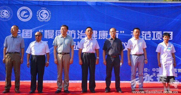 慢病,非一朝一夕可治,更非一朝一夕所患。 心腦血管病、糖尿病、惡性腫瘤……這些病有一個共同的名字--慢性非傳染性疾病(簡稱“慢病”)。8月29日, “慢病防治健康行”國家示范項目天水站啟動儀式在天水廣濟醫(yī)院隆重舉行。天水廣濟醫(yī)院副院長王雪峰主持啟動儀式。中國醫(yī)藥教育協(xié)會王仁杰副會長、于福副會長,中國醫(yī)藥教育協(xié)會副會長、解放軍第四軍醫(yī)大學(xué)副校長殷進功少將,天水廣濟醫(yī)院院黨委書記、副院長楊愛民、副院長張桂英,當(dāng)?shù)匦l(wèi)計局和相關(guān)部門領(lǐng)導(dǎo)以及慢病特困救助對象和廣濟醫(yī)院醫(yī)護人員300余人參加了“慢病防治健康行”國家示范項目天水站啟動儀式。