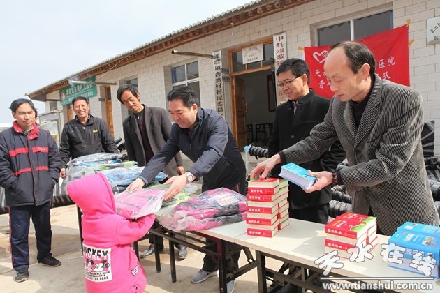 2月28日,院長丁志杰、副院長陳元前帶領醫(yī)院部分“雙聯(lián)”幫扶干部,來到“雙聯(lián)”點武山縣灘歌鎮(zhèn)杏灣村,開展愛心捐贈幫扶活動,為杏灣村小學貧困學生帶去了醫(yī)院幫扶干部自發(fā)捐贈購買的價值4000元的米奇書包、新華字典、成語詞典等學習用具,為農(nóng)村留守兒童的學習成長盡微薄之力,讓雷鋒精神傳承發(fā)展。