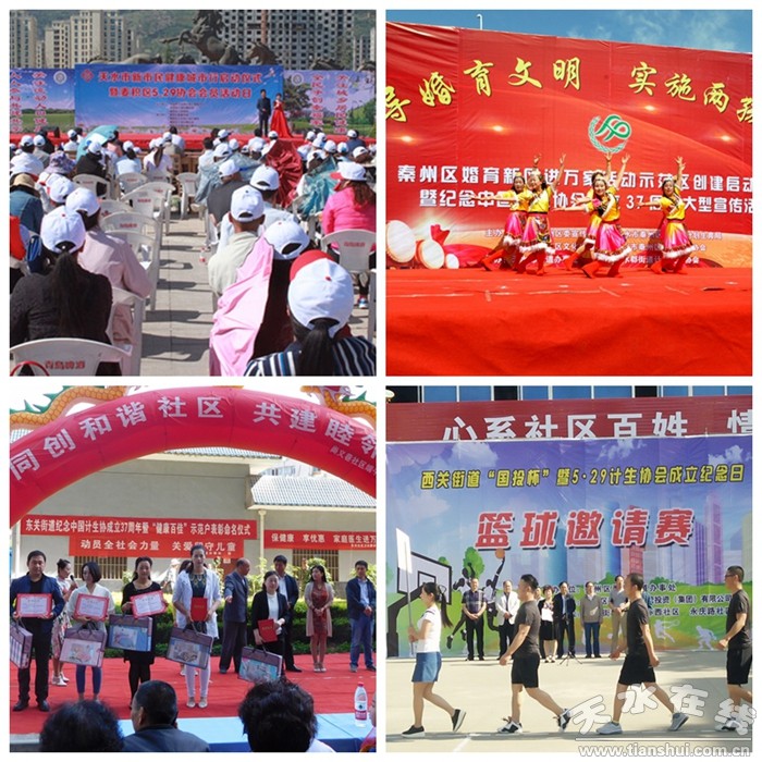 與此同時(shí),全市各級(jí)計(jì)生協(xié)會(huì)相應(yīng)開(kāi)展了主題鮮明,形式多樣的紀(jì)念活動(dòng)。活動(dòng)圍繞2017年計(jì)生協(xié)會(huì)重點(diǎn)工作,開(kāi)展集中宣傳服務(wù),慰問(wèn)計(jì)生特殊困難家庭、留守兒童,表彰隴家福健康百佳幸福家庭,舉辦健康科普知識(shí)講座,組織協(xié)會(huì)會(huì)員舉辦籃球比賽,廣泛開(kāi)展義診、健康宣傳等活動(dòng)。主題鮮明,形式多樣,宣傳工作取得了明顯成效。特別是秦州區(qū)七個(gè)街道辦事處竟相開(kāi)展紀(jì)念活動(dòng),組織群眾參與文藝演出,秦州區(qū)還在天水郡街道辦事處紀(jì)念會(huì)場(chǎng)啟動(dòng)了全區(qū)婚育新風(fēng)進(jìn)萬(wàn)家活動(dòng)儀式。麥積區(qū)把協(xié)會(huì)會(huì)員日與新市民健康城市行相結(jié)合,開(kāi)展了豐富多彩的流動(dòng)人口宣傳服務(wù)活動(dòng)。清水縣以組織各鄉(xiāng)鎮(zhèn)慰問(wèn)特殊困難家庭與留守兒童為重點(diǎn),開(kāi)展了廣泛深入的計(jì)劃生育送溫暖活動(dòng),全縣共計(jì)投入資金20多萬(wàn)元。