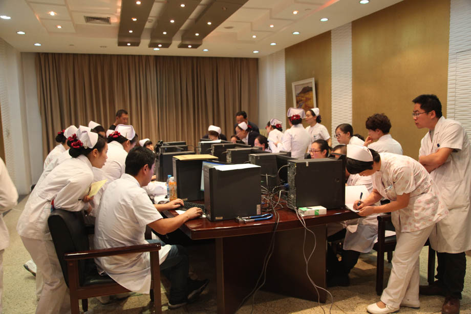8月30日 全院所有臨床醫(yī)技科室協(xié)調(diào)準(zhǔn)備,舉行院內(nèi)模擬演練,進(jìn)行現(xiàn)場(chǎng)測(cè)試掛號(hào)、收費(fèi)、入住院辦理、醫(yī)囑的開(kāi)立、執(zhí)行、條碼打印等。各級(jí)部門(mén)齊心協(xié)力,密切配合落實(shí)此項(xiàng)工作,確保工作順利推進(jìn)。
