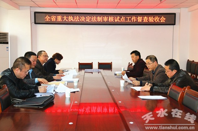 11月3日,由省行政執(zhí)法監(jiān)督局局長侯小平帶隊的全省重大執(zhí)法決定法制審核工作督查驗收小組,對天水市食藥監(jiān)局重大執(zhí)法決定法制審核試點工作進行了督查驗收。