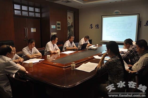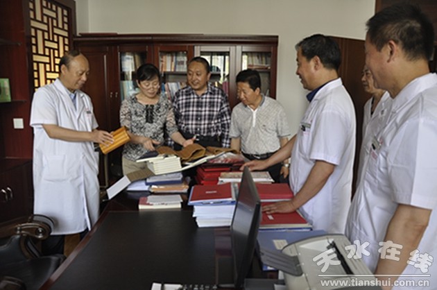 為全面掌握全國名老中醫(yī)藥專家傳承工作室建設(shè)情況和成效,進一步推動傳承工作室建設(shè),更好地繼承和推廣名老中醫(yī)藥專家學(xué)術(shù)經(jīng)驗,培養(yǎng)高層次的中醫(yī)藥人才,推進中醫(yī)藥事業(yè)的發(fā)展,6月6日下午,受甘肅省中醫(yī)藥管理局委托,天水市衛(wèi)計委在全市范圍內(nèi)抽調(diào)專家組建4人專家團隊,對市中醫(yī)院“葛健文全國名老中醫(yī)藥專家傳承工作室” 從條件建設(shè)、學(xué)術(shù)經(jīng)驗繼承工作開展情況、人才培養(yǎng)情況、信息管理系統(tǒng)的建設(shè)及使用情況、管理制度的建立及經(jīng)費使用情況等五大方面進行了驗收。副院長楊建新代表工作室作了驗收工作匯報。
