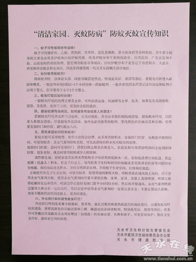 本次消殺活動(dòng)采用專業(yè)隊(duì)伍與群眾消殺相結(jié)合的方法,城鄉(xiāng)聯(lián)動(dòng)在蚊蠅孳生常見的場(chǎng)所集中力量進(jìn)行定時(shí)大規(guī)模統(tǒng)一消殺。市級(jí)共投入補(bǔ)助資金近90余萬元,覆蓋了公園、綠地、主街主路、商業(yè)區(qū)、廣場(chǎng)、公廁等場(chǎng)所,徹底消除蚊蠅。印發(fā)宣傳資料,向群眾居民、環(huán)衛(wèi)保潔等人員宣傳預(yù)防控制知識(shí),及時(shí)清運(yùn)垃圾,清除積水。發(fā)動(dòng)群眾徹底清除小街巷、城中村、城鄉(xiāng)結(jié)合部和鐵路、公路沿線的衛(wèi)生死角,對(duì)人員聚集場(chǎng)所、農(nóng)貿(mào)市場(chǎng)、建筑工地、“五小行業(yè)”等進(jìn)行集中的環(huán)境衛(wèi)生治理。