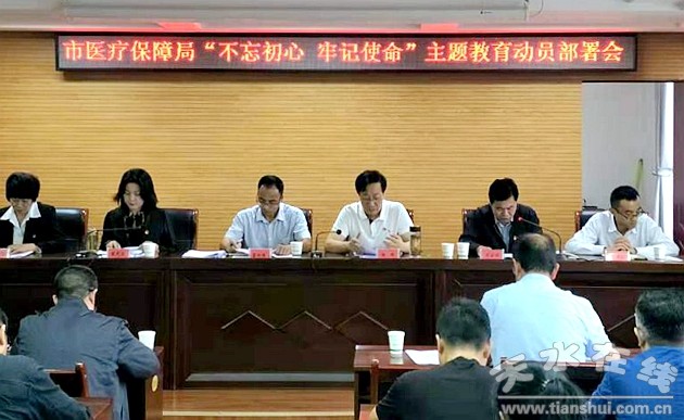 9月12日下午,天水市醫(yī)保局黨組召開“不忘初心、牢記使命”主題教育動(dòng)員部署會(huì)議。會(huì)議學(xué)習(xí)貫徹習(xí)近平總書記在“不忘初心、牢記使命”主題教育工作會(huì)議上的重要講話、視察甘肅重要講話和指示精神,全面落實(shí)中央和省委主題教育第一批總結(jié)暨第二批部署會(huì)議精神以及全市主題教育動(dòng)員部署會(huì)議精神,對(duì)醫(yī)療保障系統(tǒng)“不忘初心、牢記使命”主題教育活動(dòng)進(jìn)行了動(dòng)員部署。