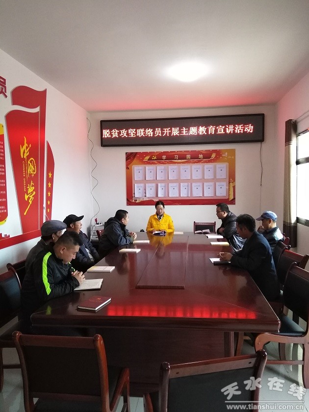 脫貧攻堅聯絡員對村級黨支部開展主題教育情況進行了全面了解,查閱了開展主題教育的相關資料、臺賬等,并結合聯系村實際情況,以“不忘初心、牢記使命,堅定信念精準發(fā)力打贏脫貧攻堅戰(zhàn)”為題,采取講黨課、專題講授等方式,對主題教育的重大意義、目標要求、方法步驟等進行了集中宣講,幫助聯系村黨支部搞好學習教育和檢視整改工作,推動村黨支部主題教育有序進行。脫貧攻堅聯絡員還與所聯系村第一書記、幫扶工作隊員及村兩委班子成員針對“兩不愁三保障”、群眾增收、破解鄉(xiāng)村振興難題、脫貧攻堅、環(huán)境整治、基礎設施建設等方面進行了座談討論。