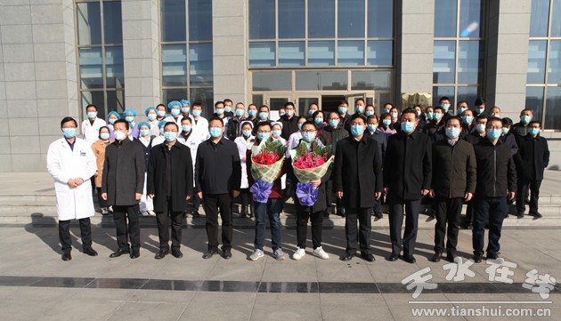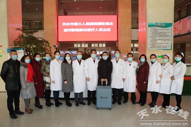 2月16日,暖陽晴明、天空湛藍(lán),蘇建建同志踏上了援鄂征程。院黨委書記丁志杰,黨委副書記、院長李剛率領(lǐng)部分職能科室主任和感染管理科全體員工,在醫(yī)院門診大廳舉行簡短的歡送儀式,為蘇建建同志送行。院黨委書記丁志杰充分肯定了蘇建建堅(jiān)守初心、擔(dān)當(dāng)使命、勇往直前、抗擊疫情的大無畏精神,勉勵(lì)他在湖北聽從指揮、逆行前進(jìn)、努力工作、做好個(gè)人防護(hù),為天水市第三人民醫(yī)院爭光。隨后,院黨委書記丁志杰,黨委副書記、院長李剛送蘇建建到指定集合點(diǎn),與其他援鄂醫(yī)療隊(duì)員會(huì)合。