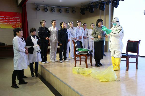 1月21日我院邀請?zhí)焖屑部刂行膶<覍θw醫(yī)務人員進行防護用品實操演示培訓,感染科、發(fā)熱門診、呼吸內(nèi)科、ICU及急診科全院參加,開展了疑似病例接診救治的應急演練。1月22日以醫(yī)護助手手機App的形式對進行“2019新型冠狀病毒感染的肺炎診療方案和醫(yī)院感染防控知識”理論考試,全院共計455人參加考試。通過培訓學習和演練,我院廣大職工系統(tǒng)掌握了新型冠狀病毒感染防控技術(shù)和臨床診療程序及急救措施等。