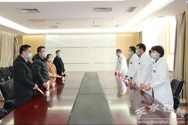 2月25日,院黨委書記李德珍、院長崇復(fù)生和院黨委班子成員對出征隊員重癥醫(yī)學(xué)科醫(yī)生余濤、護士李彥霞、呼吸內(nèi)科護士石婷婷和骨科護士李田的家屬進行了關(guān)懷慰問,對他們的理解和支持表示誠摯的感謝,并送上慰問金。