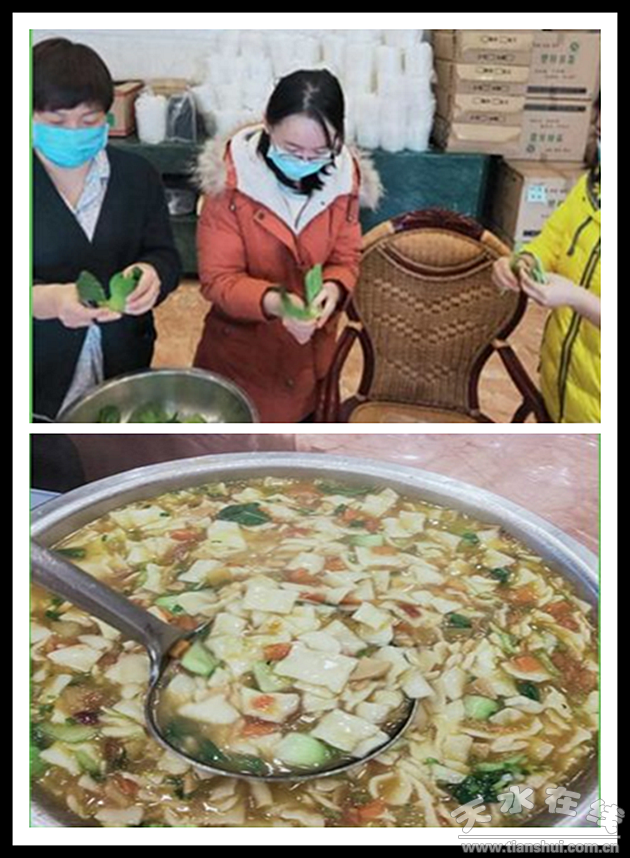 自到武漢以來(lái),吃了太久的米飯,我們這些吃慣了面食的北方女漢子們胃里的饞蟲(chóng)都跑出來(lái)了。為此,隊(duì)長(zhǎng)、后勤組長(zhǎng)與酒店后廚協(xié)商后,允許隊(duì)員們自己去廚房做飯,但只能去幾個(gè)人。于是休息的姐妹們挽起袖子和面、揉面、洗菜、切菜、炒菜……終于,一鍋香噴噴的燴面片出鍋了,大家喜歡的不得了,爭(zhēng)先恐后去打飯,吃了一碗的還想再來(lái)第二碗?上Э偭坑邢,所以一部分人沒(méi)有吃到,只能看看圖片解解饞,等待下次的機(jī)會(huì)。(趙艷芳)
