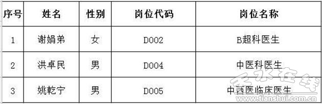根據《天水市衛(wèi)生健康委員會直屬醫(yī)院公開考核招聘急需緊缺崗位醫(yī)務人員公告》,經過資格初審、面試等工作程序,現將面試合格擬體檢人員名單予以公告。