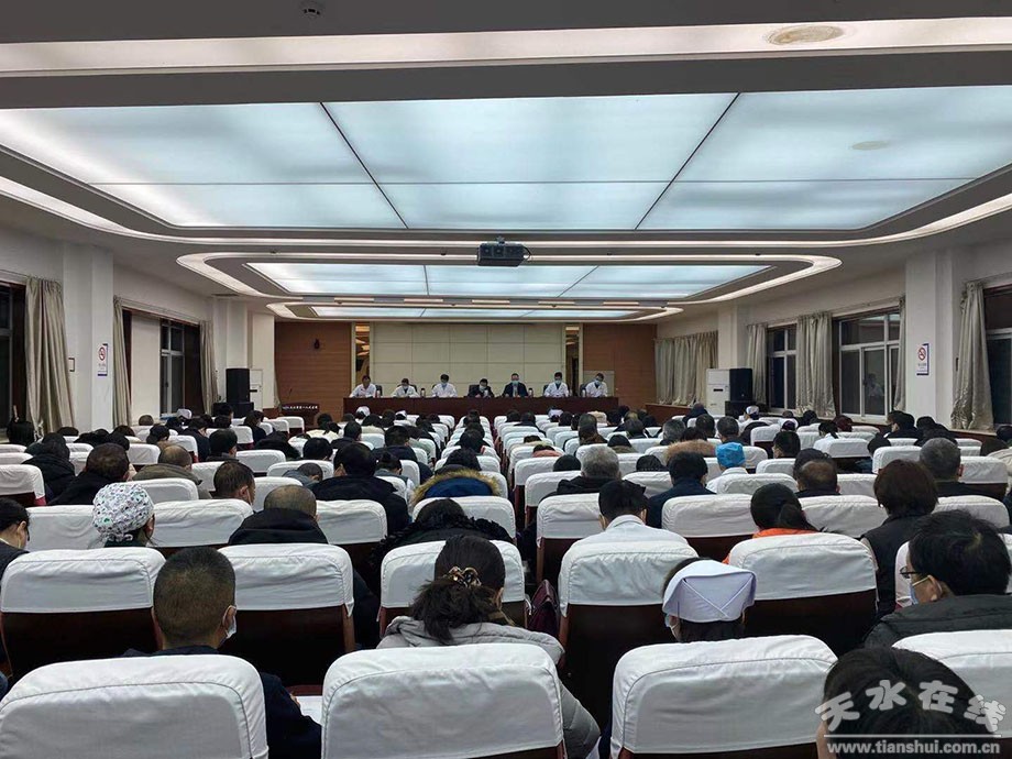 12月30日,天水市第一人民醫(yī)院黨委召開(kāi)全體中層干部大會(huì),分別對(duì)全省元旦春節(jié)暨冬春季新冠肺炎疫情防控工作電視電話會(huì)議精神和全市新冠病毒疫苗接種工作會(huì)議精神進(jìn)行傳達(dá),并對(duì)醫(yī)院做好2021年“兩節(jié)”期間疫情防控工作和醫(yī)療、生產(chǎn)安全工作進(jìn)行安排部署。黨委書(shū)記問(wèn)肅生主持會(huì)議,在家院領(lǐng)導(dǎo)班子成員及全體中層干部150余人參加會(huì)議。