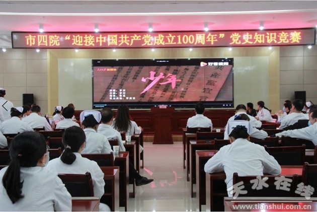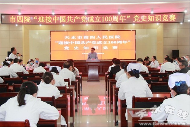 為慶祝中國共產(chǎn)黨百年華誕,回顧黨的光輝歷程,營造學(xué)黨史、知黨情、跟黨走的濃厚氛圍,進(jìn)一步豐富黨史學(xué)習(xí)教育內(nèi)容,激發(fā)廣大黨員干部積極向上、愛崗敬業(yè)的工作熱情。4月23日,天水市第四人民醫(yī)院黨委舉辦了“迎接中國共產(chǎn)黨成立100周年”黨史知識競賽活動,掀起黨史學(xué)習(xí)熱潮。
