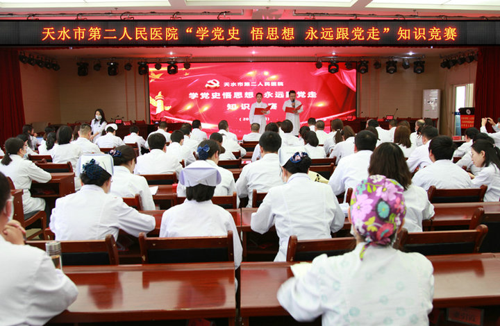 為慶祝中國共產(chǎn)黨建黨100周年,紀(jì)念“五四”運動102周年,進(jìn)一步發(fā)揮基層黨組織的先鋒模范作用,帶領(lǐng)黨員干部回顧黨的光輝歷程、謳歌黨的豐功偉績、抒發(fā)對黨的崇敬之情,引領(lǐng)廣大團員青年傳承和弘揚“愛國、進(jìn)步、民主、科學(xué)”的五四精神。4月30日,天水市第二人民醫(yī)舉辦“學(xué)黨史悟思想,永遠(yuǎn)跟黨走”黨史知識競賽。院黨委委員、班子成員,科室負(fù)責(zé)人和黨員、團員、群眾代表及參賽選手、共計160余人參加。