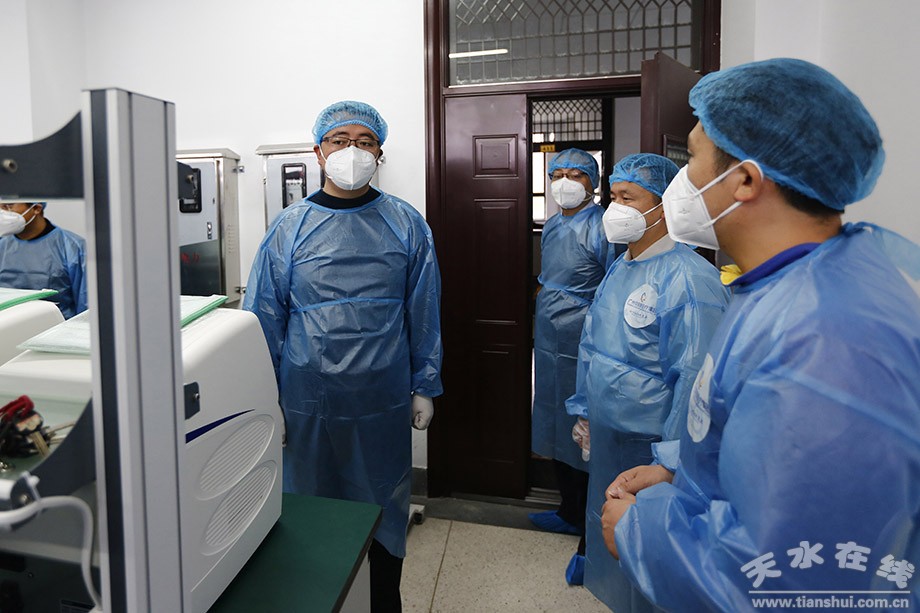為認(rèn)真貫徹落實(shí)習(xí)近平總書記關(guān)于疫情防控工作的重要講話和指示精神,全面落實(shí)市委、市政府堅(jiān)決打贏疫情防控遭遇戰(zhàn)的各項(xiàng)工作要求,近日我市秦州、麥積兩區(qū)開展了全員核酸檢測,為確保核酸實(shí)驗(yàn)室檢測質(zhì)量及生物安全,10月25日,天水市第一人民醫(yī)院副院長、副主任檢驗(yàn)師謝會軍,天水市醫(yī)學(xué)檢驗(yàn)質(zhì)控中心主任、主任檢驗(yàn)師李杰,副主任檢驗(yàn)師謝成綱在市衛(wèi)健委體改科副科長郭強(qiáng)強(qiáng)的帶領(lǐng)下對市內(nèi)兩家PCR實(shí)驗(yàn)室進(jìn)行了督導(dǎo)檢查。