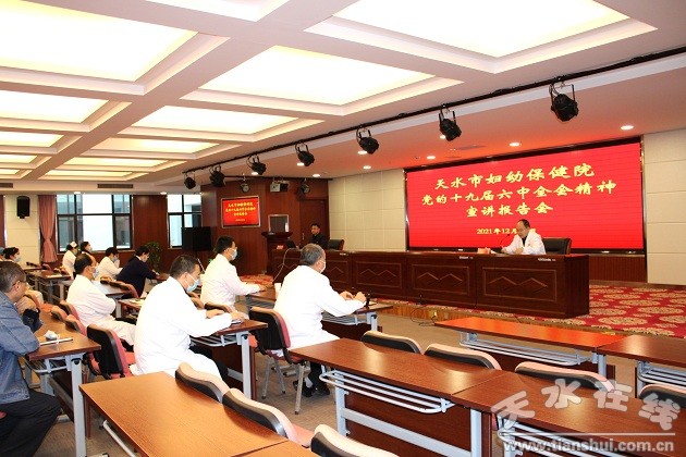 為進(jìn)一步學(xué)習(xí)貫徹十九屆六中全會(huì)精神,深入領(lǐng)會(huì)習(xí)近平總書(shū)記在全會(huì)上的重要講話精神,引導(dǎo)廣大黨員干部知史愛(ài)國(guó)、愛(ài)黨、愛(ài)院,切實(shí)從黨史學(xué)習(xí)教育中汲取智慧和力量。12月10日,天水市婦幼保健院召開(kāi)黨的十九屆六中全會(huì)精神宣講報(bào)告會(huì)。院領(lǐng)導(dǎo)班子、中層干部、全體共產(chǎn)黨員共計(jì)100余人,一同聆聽(tīng)報(bào)告宣講會(huì)。
