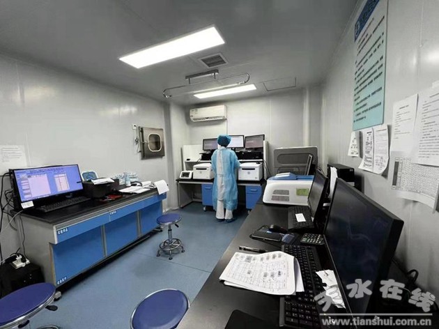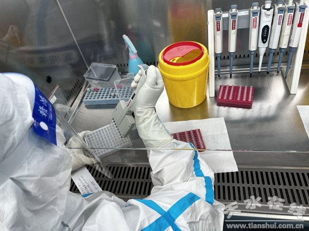 從采樣結(jié)束到核酸檢測(cè)結(jié)果出具,對(duì)市民來(lái)說(shuō)是4-6小時(shí)的等待,但對(duì)于核酸檢測(cè)團(tuán)隊(duì)來(lái)說(shuō),卻是24小時(shí)不停歇的步步篩查和層層把關(guān)。從3月11日起至今,天水市中醫(yī)醫(yī)院檢驗(yàn)科核酸檢測(cè)實(shí)驗(yàn)室已經(jīng)連續(xù)17天每天接收全市大規(guī)模核酸檢測(cè)標(biāo)本22000-25000人份。每個(gè)晚上燈火通明,檢驗(yàn)人員“全副武裝”,有序地對(duì)新冠病毒核酸樣本進(jìn)行檢測(cè)。