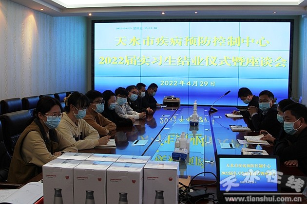 4月29日,天水市疾病預(yù)防控制中心舉行2022屆實習(xí)生結(jié)業(yè)儀式暨座談會,中心班子成員、實習(xí)科室負責(zé)人和帶教老師參加會議。