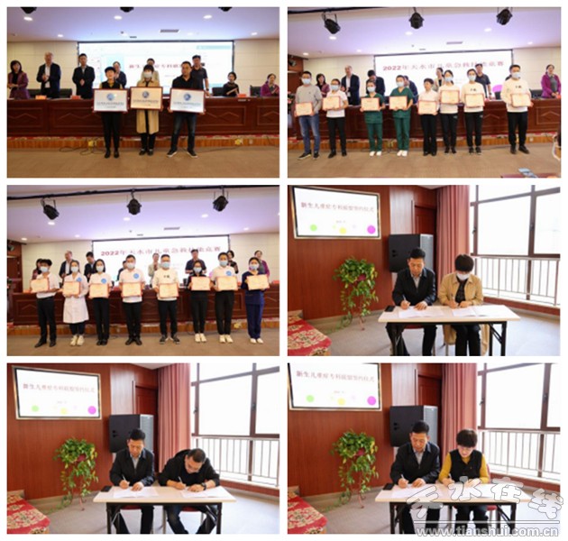 全市兒科技能大賽結(jié)束后,舉行了天水市新生兒重癥專科聯(lián)盟簽約授牌儀式,市婦幼保健院作為牽頭單位與天水市第一人民醫(yī)院、甘谷縣人民醫(yī)院、麥積區(qū)婦幼保健計劃生育服務中心等聯(lián)盟單位簽約,出席儀式的領(lǐng)導共同為天水市新生兒重癥?坡(lián)盟揭牌。