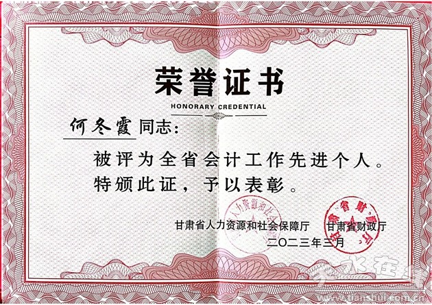 近日,甘肅省人力資源和社會(huì)保障廳、甘肅省財(cái)政廳發(fā)文表彰全省會(huì)計(jì)工作先進(jìn)集體和先進(jìn)個(gè)人,天水市中醫(yī)醫(yī)院財(cái)務(wù)科科長何冬霞榮獲“全省會(huì)計(jì)工作先進(jìn)個(gè)人”榮譽(yù)稱號(hào)。