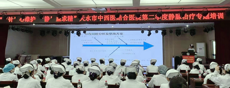 為保證靜脈治療安全及質(zhì)量管理向?qū)I(yè)化、規(guī)范化、標(biāo)準(zhǔn)化發(fā)展,結(jié)合“三抓三促”行動(dòng)“抓學(xué)習(xí)促提升”工作要求,5月30日,天水市第二人民醫(yī)院靜脈治療專(zhuān)科護(hù)理小組在多功能廳開(kāi)展第二季度靜療小組培訓(xùn)會(huì)。邀請(qǐng)護(hù)理部主任陳少娟參會(huì)并指導(dǎo),培訓(xùn)會(huì)由靜脈治療小組組長(zhǎng)、胸心外普外二乳腺甲狀腺科護(hù)士長(zhǎng)趙海蘭主持,各科護(hù)士長(zhǎng)、靜療小組聯(lián)絡(luò)員約60余人參加。