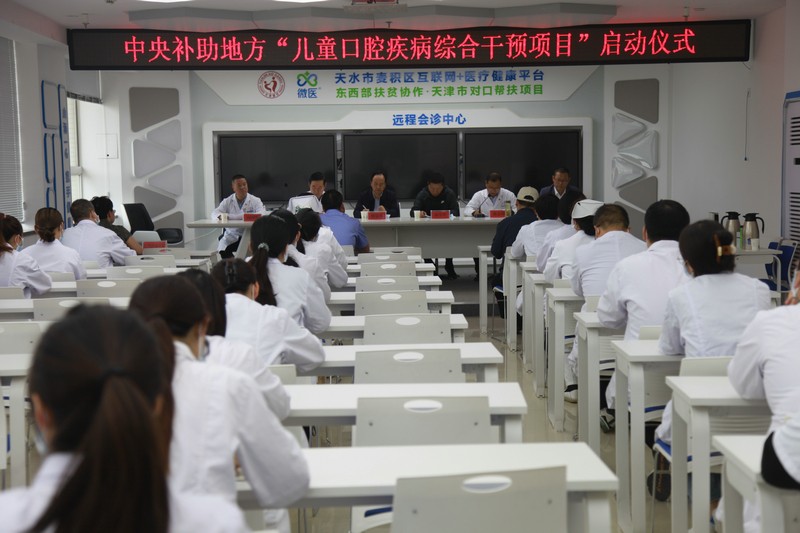 2023年中央補助地方擴大國家免疫規(guī)劃“兒童口腔疾病綜合干預項目”天水市麥積區(qū)實施啟動儀式于6月6日在天水市第二人民醫(yī)院舉行。麥積區(qū)教育局黨組副書記劉景濤、區(qū)衛(wèi)健局副局長南小平、區(qū)疾控中心主任惠中義和市二院黨委書記曹寶國、院長唐志鋒、副院長高國明出席儀式并講話。啟動儀式由市二院院長唐志鋒主持。項目實施學校領導和市二院相關(guān)科室負責人及部分職工參加。