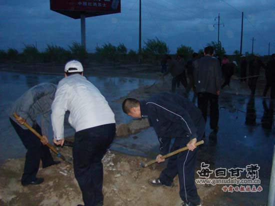 敦煌市莫高鎮(zhèn)干部群眾全力抗洪(張建文/ 圖)