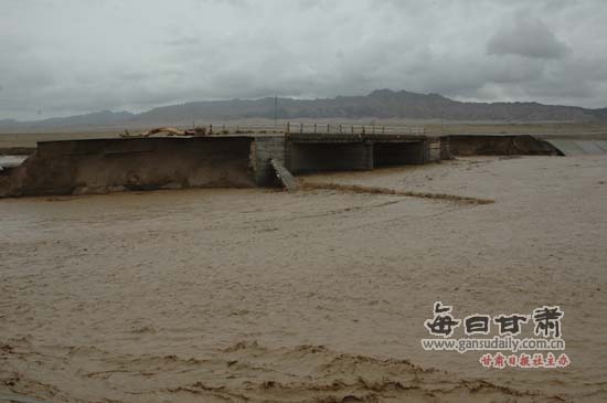 通往莫高窟必經(jīng)之路上的橋梁被洪水沖斷(張建文/ 圖)