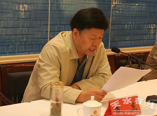 天水市委常委、宣傳部長王光慶宣布市教育局對市一中的獎勵決定