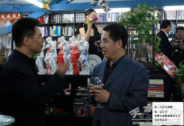 在頒獎典禮結束后,教育部高等學校高職高專藝術設計類專業(yè)教學指導委員會主任:林家陽教授與甘肅工業(yè)職業(yè)技術學院藝術系主任張學文進行了深入探討,并對西部設計教育及該院的設計發(fā)展提出建議。