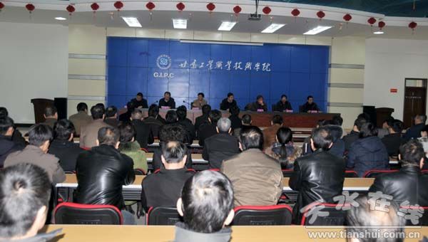 黨委副書記郭建忠、常務(wù)副院長魯挑建、副院長楊華、徐凱、李玉生及黨委委員郭超英、楊建國、院長助理羅增智出席會議,全院副科以上干部和部分教師代表參加了會議。會議由院長曹愛明主持。