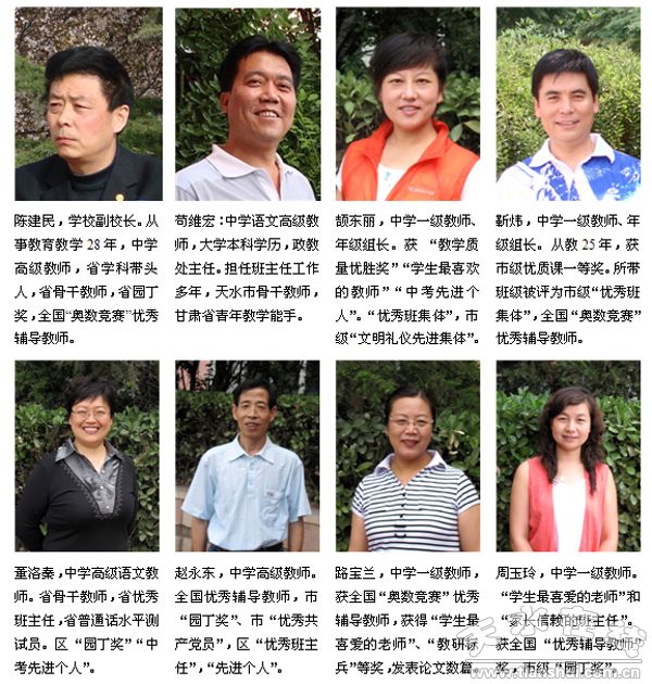 天水市逸夫?qū)嶒?yàn)中學(xué)2010級(jí)骨干教師陣容