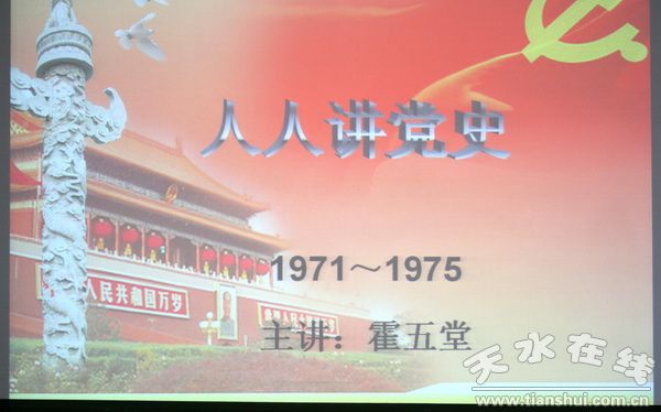 霍五堂副校長主要講述1971-1975年之間黨的歷史,以“九一三”事件、“批林整風(fēng)”運動、“乒乓外交”等具體歷史事件為背景,從政治、經(jīng)濟、文化、教育、外交等方面系統(tǒng)、全面地講解了黨在這五年的歷史。講解過程中穿插了大量的珍貴圖片及視頻資料,真實地再現(xiàn)了“文化大革命”后期的國內(nèi)情況及國際形勢,對我們了解這段歷史,正確評價毛澤東晚年時期的功過是非提供了重要史據(jù)。