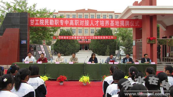 在十分熱列的氣氛中,朱紅艷與曹愛明為試驗(yàn)基地揭牌。儀式結(jié)束后,又召開了座談會(huì),就中高職如何做好招生工作的銜接、人才培養(yǎng)摸標(biāo)的層次銜接、專業(yè)及課程設(shè)置的銜接、實(shí)習(xí)實(shí)訓(xùn)及職業(yè)資格證書的銜接等問題展開了廣泛的討論,對(duì)目前一些能夠操作的問題達(dá)成了協(xié)議。民勤職專是一所擁有近5000名學(xué)生的中等職業(yè)技術(shù)學(xué)校,近幾年來,每年都為甘工學(xué)院輸送新生約50多名,是該院比較穩(wěn)定的生源基地之一。