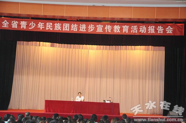 該校黨委副書記郭建忠在主持報告會時指出:這次全省青少年民族團結進步宣傳教育活動是省委統(tǒng)戰(zhàn)部、省民委深入貫徹落實省第十二次黨代會精神,大力弘揚全省各民族大團結大發(fā)展大繁榮的主旋律,積極引導各族人民特別是青少年學生牢固樹立“三個離不開”的思想觀念,進一步鞏固和發(fā)展平等、團結、互助、和諧的民族關系的重要舉措。我校師生要以民族團結宣傳教育活動為契機,進一步增強民族工作的主動性、創(chuàng)造性和針對性,繼續(xù)在學校深入開展民族團結宣傳教育,把宣傳教育的成果轉化為各族師生團結友愛、同心同德、攜手奮進的良好氛圍,轉化為推動科學發(fā)展、促進社會和諧、實現(xiàn)學?缭桨l(fā)展的實際行動。要求全校學生以此次民族團結宣傳活動為起點,切實增強自己的責任感,擔負起中華民族偉大復興的歷史使命。