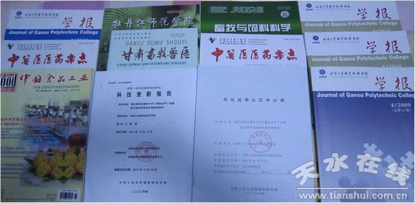 課題組于2009年10月起,先后與中國(guó)科學(xué)院西高所、甘肅農(nóng)業(yè)大學(xué)、西北師范大學(xué)、天水師范學(xué)院、甘肅省畜牧獸醫(yī)研究所等科研院所進(jìn)行相關(guān)合作研究,截止2011年11月完成預(yù)定研究計(jì)劃。在《中獸醫(yī)醫(yī)藥雜志》、《中國(guó)食品工業(yè)》、《甘肅畜牧獸醫(yī)》、《畜牧與飼料科學(xué)》、《廣東化工》等國(guó)家權(quán)威及省部級(jí)刊物發(fā)表論文12篇,申報(bào)國(guó)家實(shí)用新型專(zhuān)利4項(xiàng),取得了一定的經(jīng)濟(jì)和社會(huì)效益。該課題于2011年12月7日通過(guò)天水市科技局組織的科學(xué)技術(shù)成果鑒定(天科鑒字[2011]第49號(hào)),研究成果達(dá)到國(guó)內(nèi)同類(lèi)研究先進(jìn)水平。