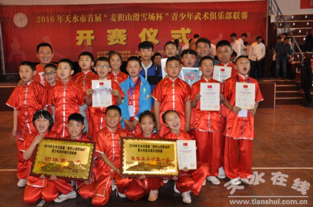 本屆比賽由天水市體育局、天水市教育局、共青團天水市委主辦。比賽分兒童組、少年組兩個組別,各設(shè)拳、劍、刀、槍、棍術(shù)等項目,并設(shè)集體基本功比賽,共有來自全市10個青少年武術(shù)俱樂部的210名隊員參加了比賽。
