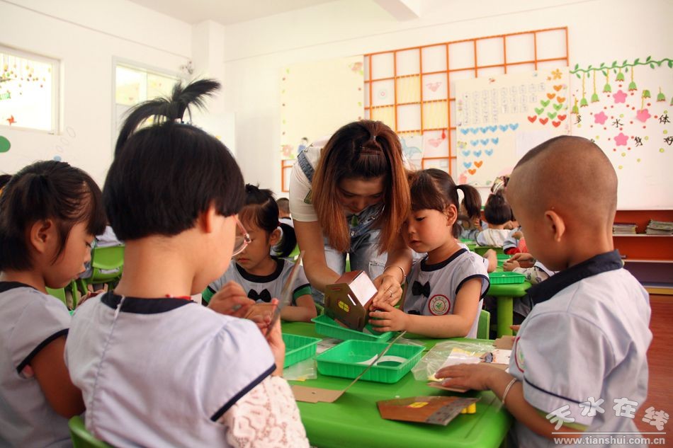 該園堅持特色辦園,特色發(fā)展,教學(xué)中注重游戲教學(xué),讓孩子玩的開心,堅決防止小學(xué)化傾向,全面WIFI覆蓋,鏈接教學(xué)一體機,讓老師隨時可以在互聯(lián)網(wǎng)上找到上課所需要的教學(xué)圖片和知識,園內(nèi)的特色課程—科學(xué)實驗操作,讓孩子們近距離走進科學(xué)了解科學(xué),發(fā)現(xiàn)科學(xué),讓孩子們在教室里也能了解世界的精彩。在幼兒園文化環(huán)境創(chuàng)設(shè)中,鼓勵老師和孩子一起利用廢舊材料創(chuàng)作,讓孩子自己動手美化幼兒園。把孩子的作品滲透到幼兒園的每一個角落,每一寸地方,賦予其教育的功能,滲透園所文化的理念。