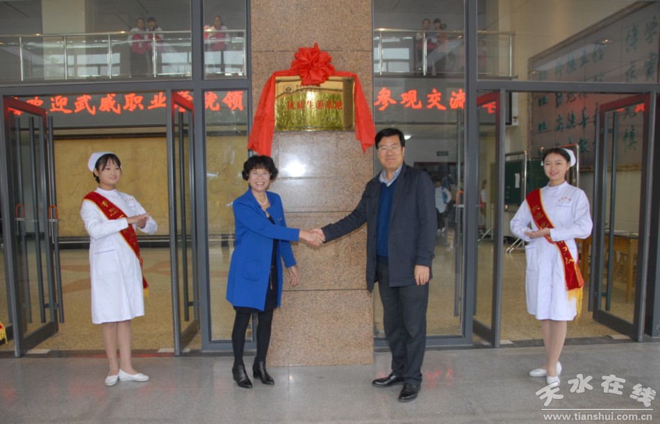 10月21日上午,“武威職業(yè)學(xué)院優(yōu)質(zhì)生源基地”揭牌儀式在天水市衛(wèi)生學(xué)校教學(xué)樓前隆重舉行。武威職業(yè)學(xué)院副院長潘玉華和市衛(wèi)校校長毛如君共同揭牌,校領(lǐng)導(dǎo)班子成員和相關(guān)處室負(fù)責(zé)人參加了揭牌儀式。