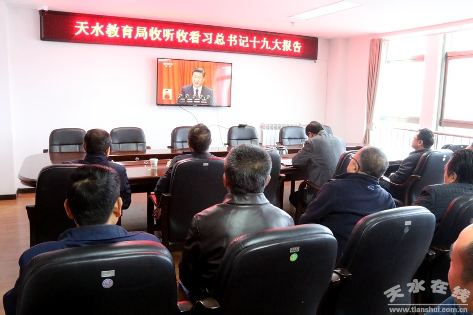 10月18日上午,天水市教育局組織全體機關(guān)干部收看中國共產(chǎn)黨第十九次全國代表大會開幕會,聆聽習(xí)近平同志代表第十八屆中央委員會向大會作的報告。