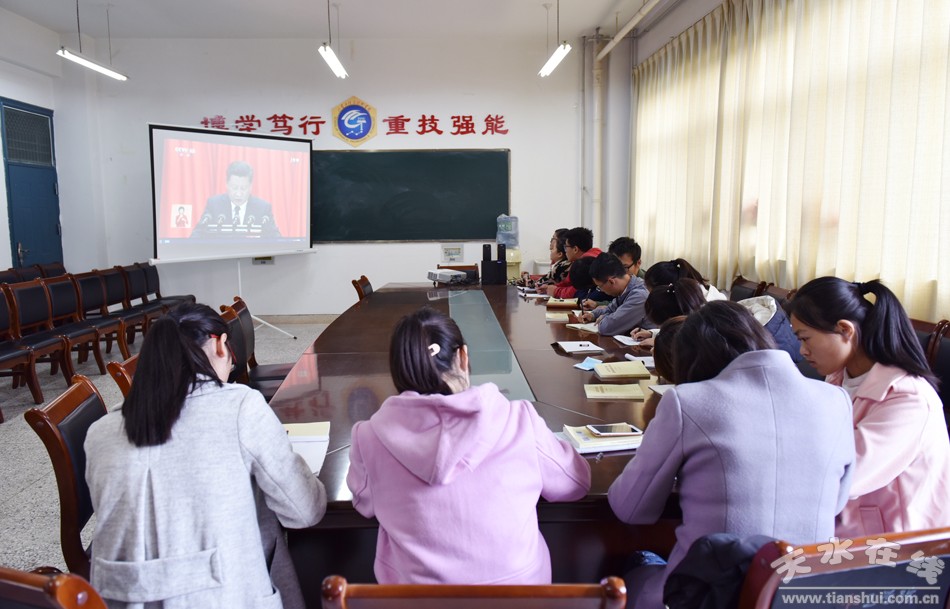 全校上下對(duì)盛會(huì)的召開(kāi)高度關(guān)注,在學(xué)校會(huì)議室、職能部門(mén)辦公室、二級(jí)學(xué)院會(huì)議室、圖書(shū)館、學(xué)生食堂和學(xué)生宿舍,師生們踴躍收收聽(tīng)看黨的十九大開(kāi)幕會(huì)。