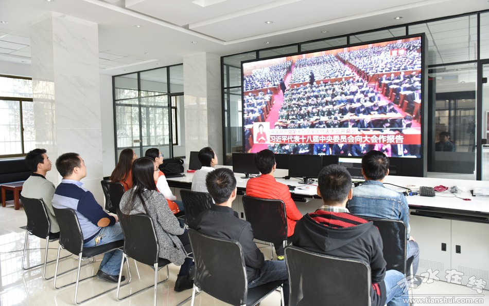 10月18日上午9時(shí),中國(guó)共產(chǎn)黨第十九次全國(guó)代表大會(huì)開(kāi)幕會(huì)在人民大會(huì)堂隆重舉行。天水師范學(xué)院積極組織廣大師生收聽(tīng)收看黨的十九大開(kāi)幕會(huì)盛況,認(rèn)真聆聽(tīng)習(xí)近平總書(shū)記代表黨的十八屆中央委員會(huì)所作的報(bào)告。