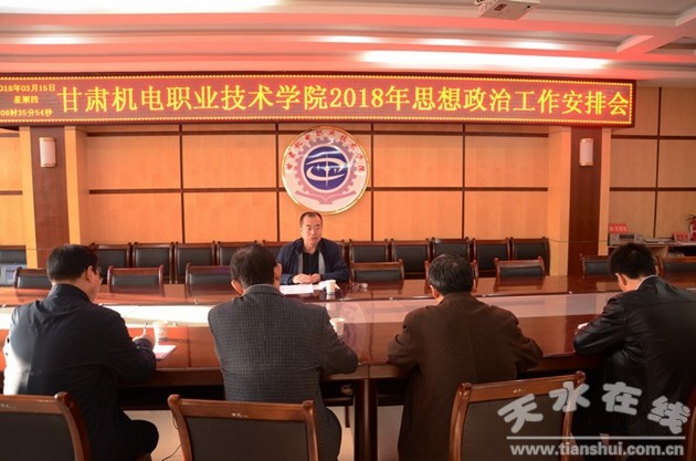 3月15日上午,甘肅機電職業(yè)技術(shù)學院在二樓會議室召開2018年思想政治工作安排會。副院長李自勇對學院2018年思政工作作總體安排并提出要求,宣傳部、黨辦、組織部、基礎(chǔ)教學部、學工部等部門負責人參加會議。