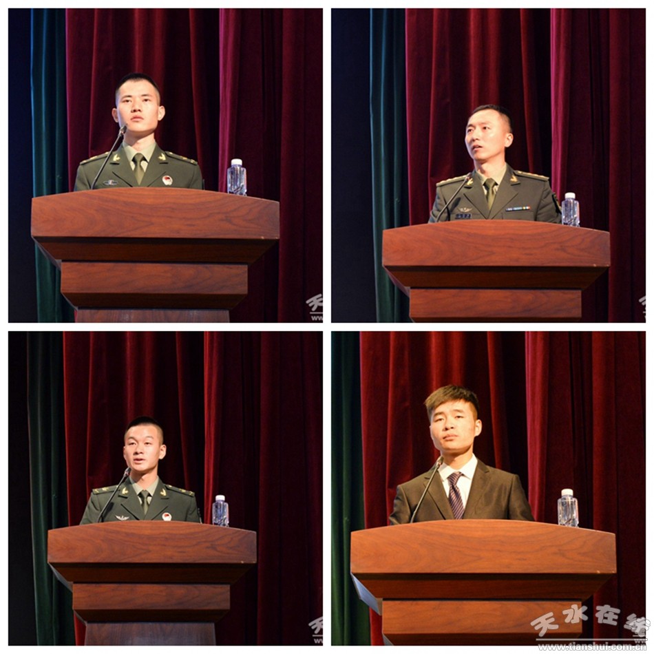 報告會上宣讀了習主席給南開大學新入伍大學生的回信,宣講了國家、教育部和甘肅省對入伍大學生的各項優(yōu)惠政策。西部戰(zhàn)區(qū)陸軍31682部隊通信執(zhí)勤營副站長吳詩劍、中部戰(zhàn)區(qū)陸軍32147部隊戰(zhàn)士易露露、戰(zhàn)略支援部隊酒泉衛(wèi)星發(fā)射中心發(fā)射測試站班長王領(lǐng)、蘭州理工大學生(原蘭州軍區(qū)68208部隊戰(zhàn)士)孫李成分別講述了他們懷揣著滿腔報國熱情,攜筆從戎,投身于火熱的軍營,經(jīng)過部隊血與火的洗禮與淬煉,依靠自己刻苦努力和拼搏,逐漸成長為新時代部隊需要的優(yōu)秀人才,為我國科技強軍、科技興軍,建設一支現(xiàn)代化人民軍隊奉獻青春和汗水的感人故事。4名優(yōu)秀大學生士兵的激情宣講,打動和感染了在場的每一個聽眾,引起了學校學生的強烈共鳴,報告會不時被聽眾長時間的熱烈掌聲打斷。