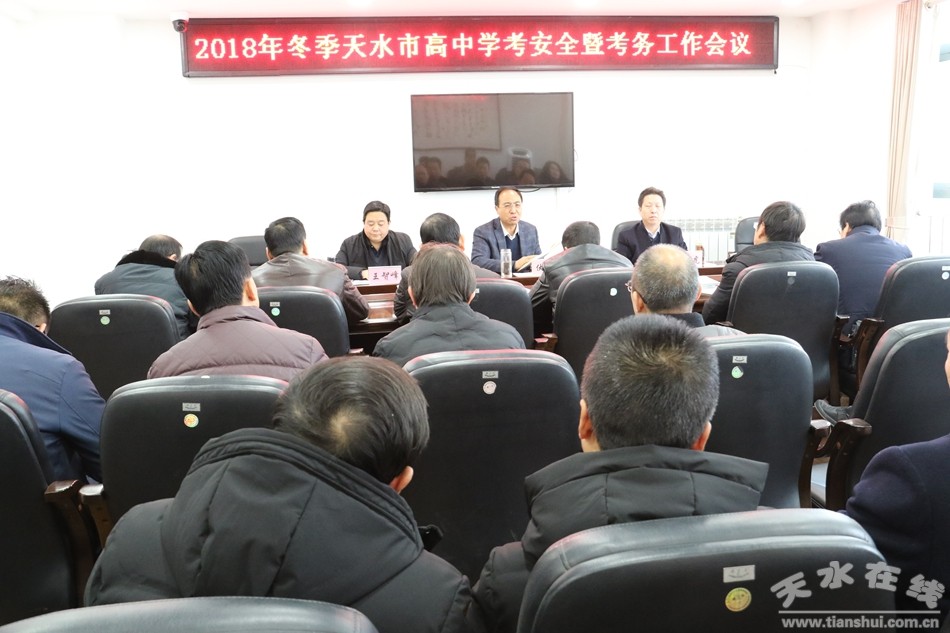 為了嚴(yán)密組織好本次考試,天水市招考委成立了2018年甘肅省普通高中學(xué)業(yè)水平考試天水考區(qū)組織機(jī)構(gòu),于12月11日召開了普通高中學(xué)業(yè)水平考試考務(wù)及安全工作會(huì)議,傳達(dá)了全省普通高中學(xué)業(yè)水平考試考務(wù)工作會(huì)議精神,安排部署了全市高中學(xué)考考務(wù)工作,進(jìn)一步靠實(shí)工作責(zé)任。市招考委與縣區(qū)招委會(huì)簽訂了《2018年天水市普通高中學(xué)業(yè)水平考試安全保密考風(fēng)考紀(jì)責(zé)任書》。在全市6個(gè)縣區(qū)新建完成了9個(gè)標(biāo)準(zhǔn)化考點(diǎn),462個(gè)標(biāo)準(zhǔn)化考場(chǎng),為全市所有標(biāo)準(zhǔn)化考點(diǎn)的2600個(gè)考場(chǎng)配置了2600臺(tái)最新型的無線信號(hào)屏蔽器,有效提升了預(yù)防手機(jī)作弊的能力,為各級(jí)各類考試的安全開展提供了有力保障。本次考試共抽調(diào)監(jiān)考教師 1700多名,繼續(xù)實(shí)行監(jiān)考教師本縣區(qū)內(nèi)“單對(duì)調(diào)”監(jiān)考制度,實(shí)行監(jiān)考教師回避制度。