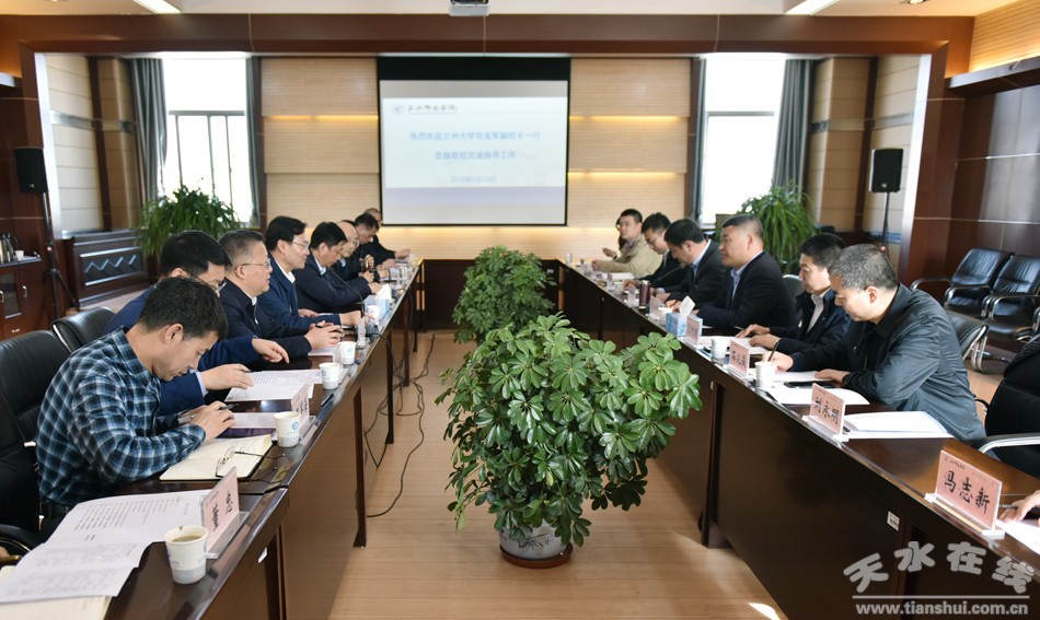 3月29日下午,蘭州大學(xué)副校長(zhǎng)范寶軍帶領(lǐng)歷史文化學(xué)院、信息學(xué)院、生命科學(xué)學(xué)院、藝術(shù)學(xué)院、校慶辦、校友總會(huì)辦公室等學(xué)院和部門負(fù)責(zé)人來天水師范學(xué)院,就兩校戰(zhàn)略合作協(xié)議落實(shí)工作進(jìn)行對(duì)接交流。