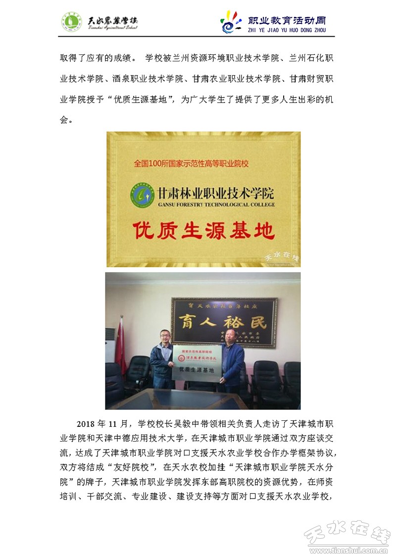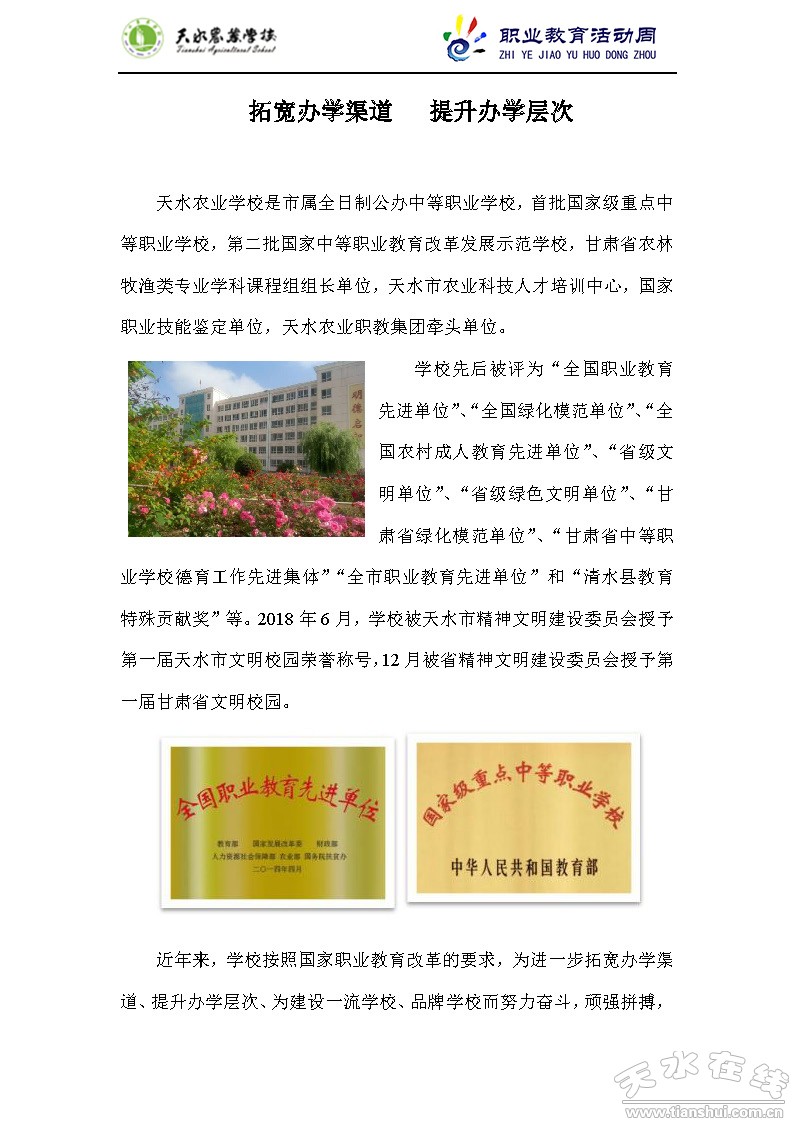 天水農(nóng)校拓寬辦學渠道 提升辦學層次