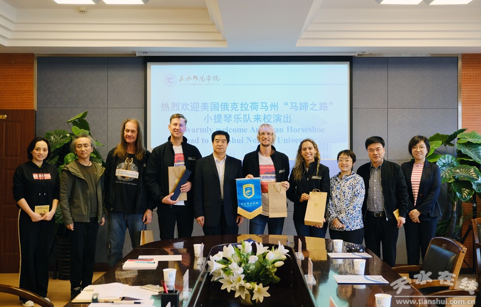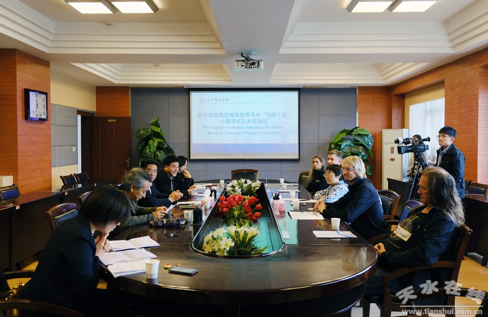 9月18日,美國俄克拉荷馬州“馬蹄之路”小提琴樂隊領(lǐng)隊凱里•迪林漢姆一行在甘肅省對外友好協(xié)會辦公室副主任林麗君陪同下訪問天水師院,并與學校師生共同開展音樂文化交流活動。