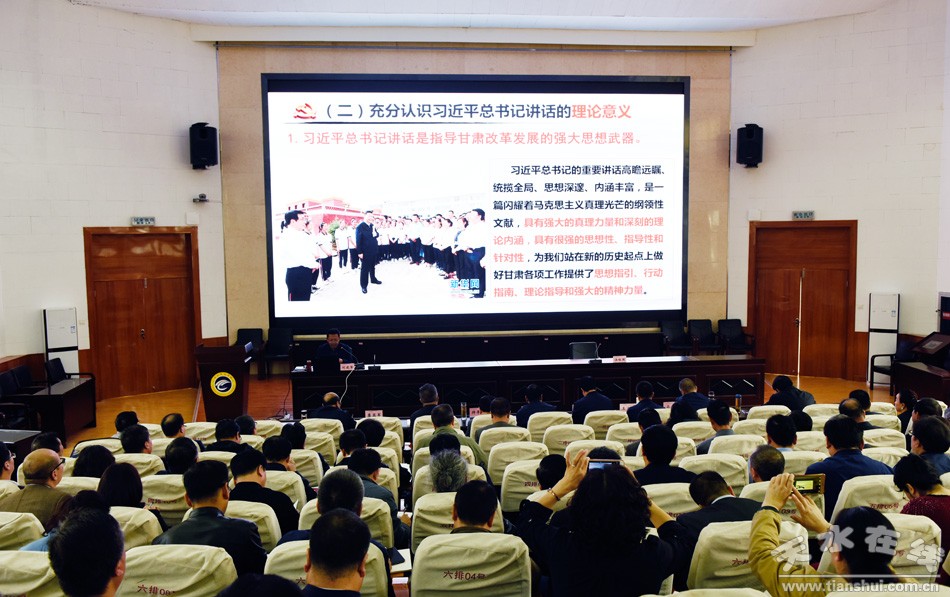9月20日,天水師范學(xué)院“不忘初心、牢記使命”主題教育領(lǐng)導(dǎo)干部讀書班輔導(dǎo)報(bào)告會(huì)在二號(hào)報(bào)告廳舉辦,馬克思主義學(xué)院副教授劉建軍圍繞“學(xué)習(xí)貫徹習(xí)近平總書記視察甘肅重要講話精神”作專題輔導(dǎo)報(bào)告。學(xué)校領(lǐng)導(dǎo)、黨委常委、全體處級(jí)干部參加學(xué)習(xí)。黨委常委、副校長汪詠國主持輔導(dǎo)報(bào)告。