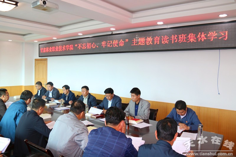 根據(jù)甘肅林學院主題教育領(lǐng)導(dǎo)小組辦公室安排,自9月23日起,至27日集中五天時間,強化“不忘初心、牢記使命”主題教育“讀書班”集體學習,該院領(lǐng)導(dǎo)班子成員、各黨總支書記、各部門主要負責人參加。學習班將集中精力“讀原著、學原文、悟原理”。同時結(jié)合“讀書班”學習,開展交流研討,每天下午在集中學習之余,利用一個小時開展交流研討,安排6名黨總支書記和部門主要負責人交流發(fā)言。
